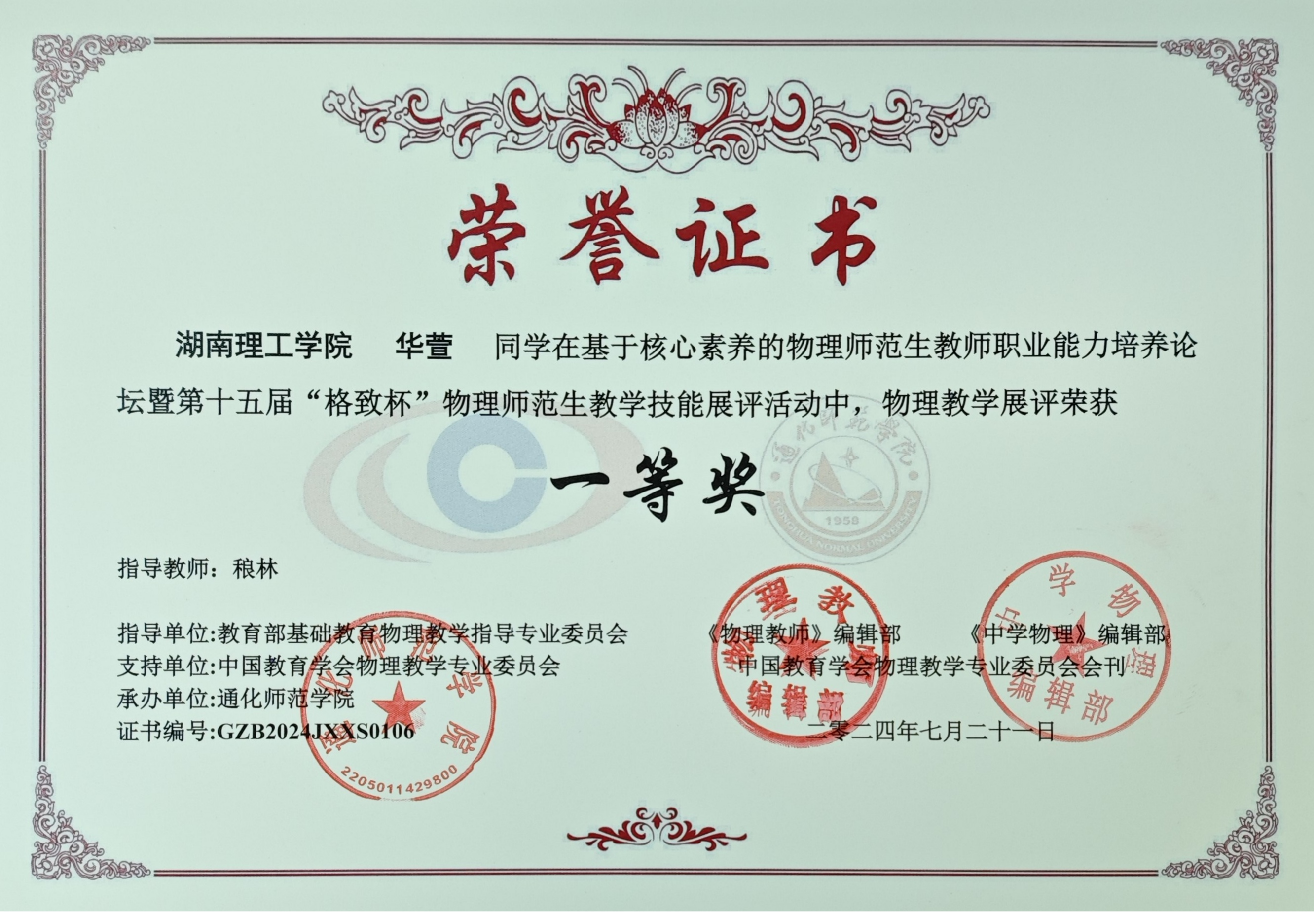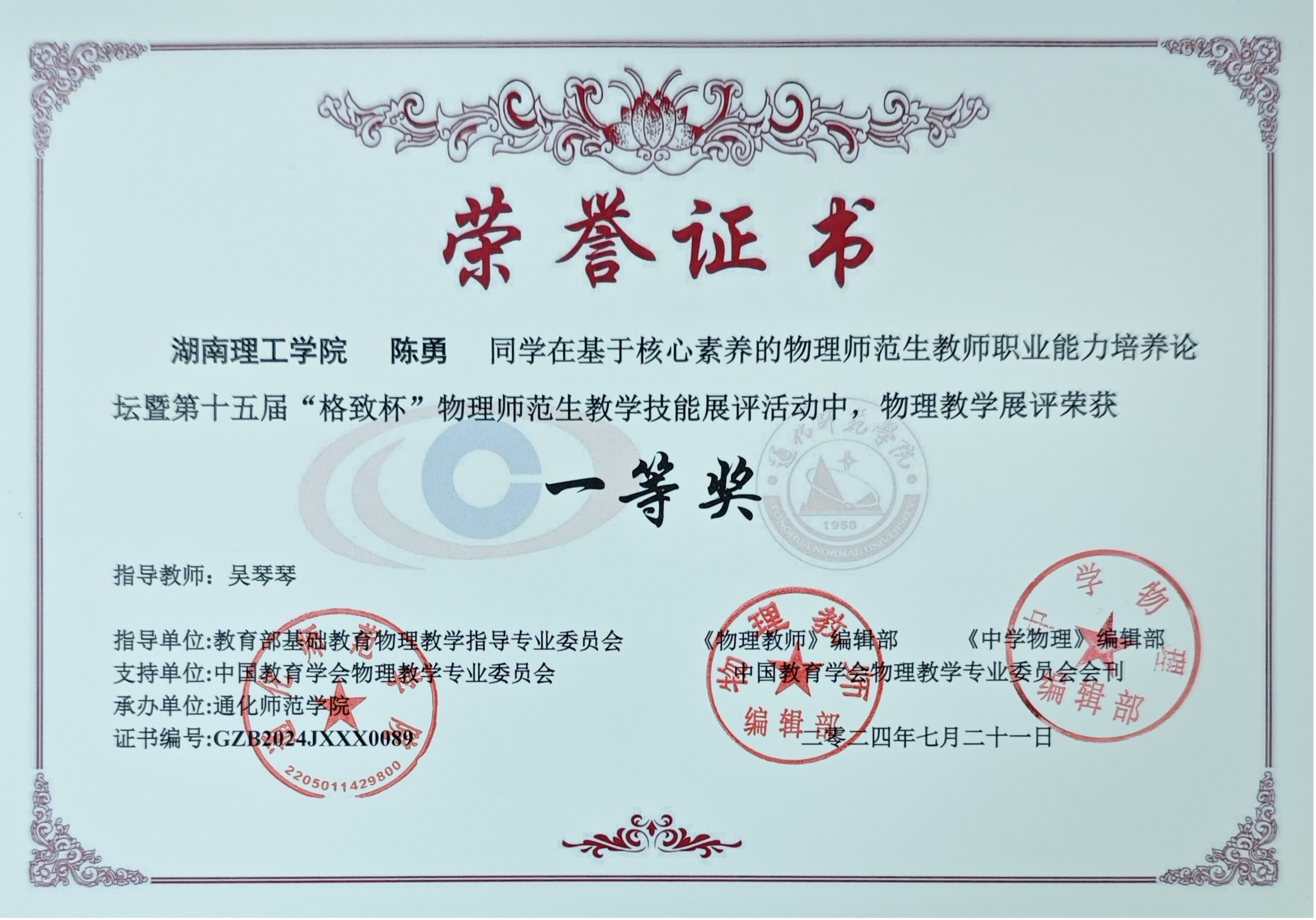 据悉“格致杯”物理师范生教学技能展活动是全国高水平的大学生研究生物理教学技能比赛,也是全国物理师范专业参赛面最广、影响力最大的比赛迄今已成功举办了十五届。这一赛事活动以其广泛的参与度和深远的影响力,被誉为全国物理教育界的年度盛事,对创新人才培养模式、提高物理师范类大学生与研究生的实践能力和综合素质大有裨益。(图/  李奇云
