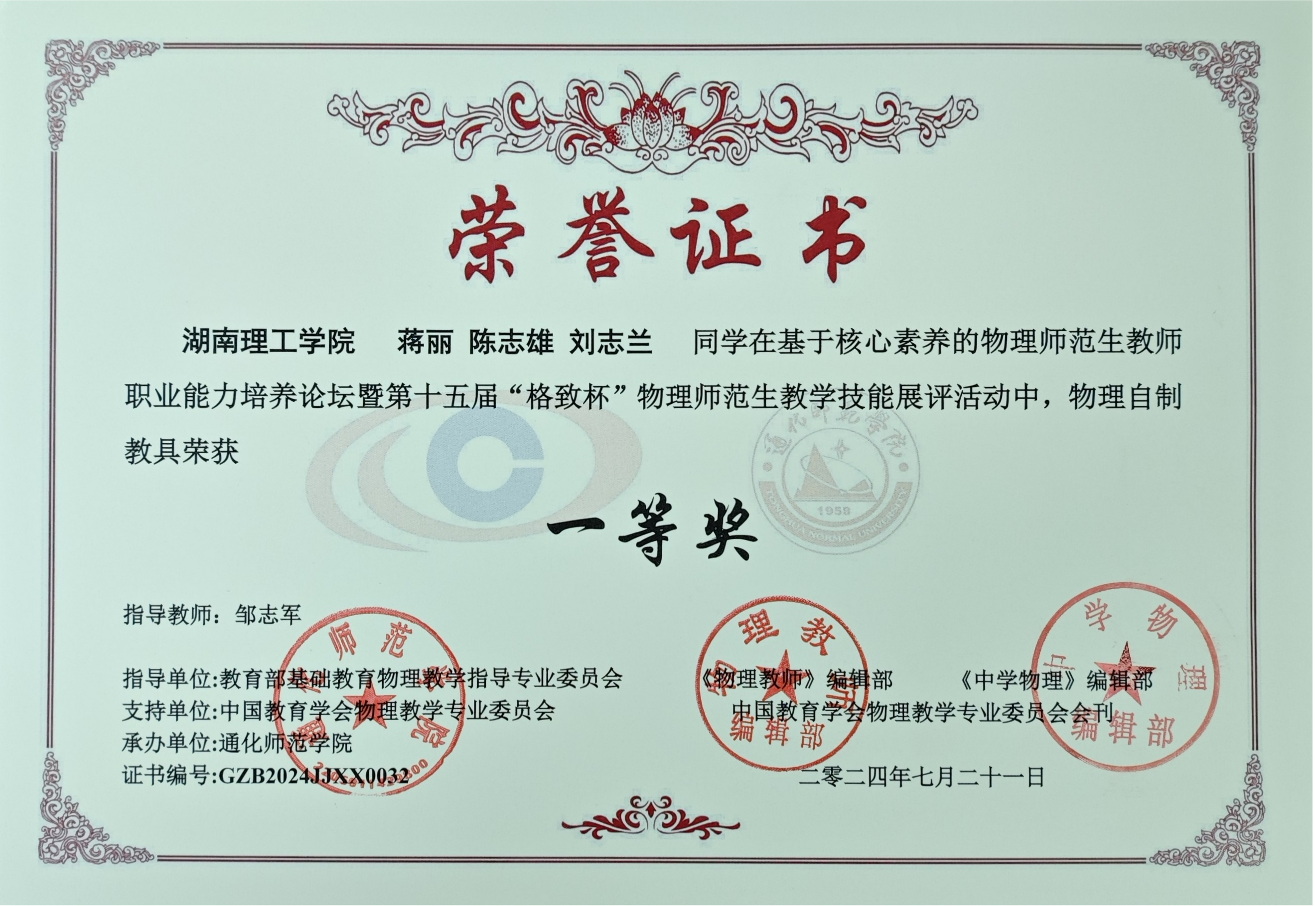 物电学子在第十五届“格致杯”物理师范生教学技能展评活动中获佳绩