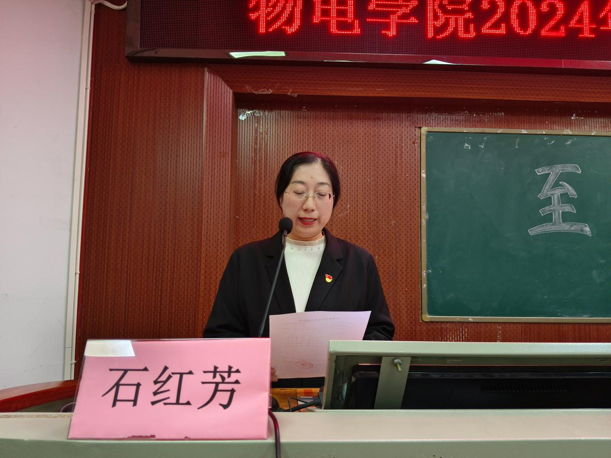 11月24日下午,物电学院在6号楼报告厅举行2024年下半年新党员宣誓仪式。院党委委员、学生支部书记出席,学生党员、入党积极分子参加,何小娅主持。