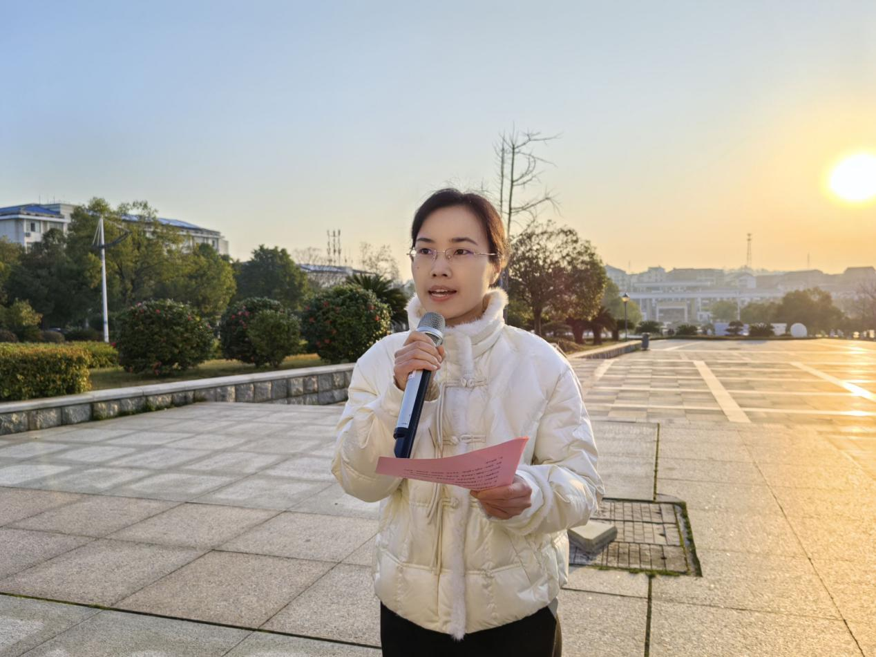 教师代表刘三姐希望全体学生夯实基础,培养科学思维,以物理之眼,探索强国之基;以微电之力,守护中国之“芯”;以光电为媒,照亮复兴之路,将个人理想融入国家发展,牢记使命,为科技强国贡献力量。