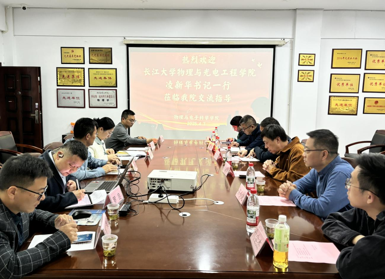 4月7日,长江大学物理与光电工程学院党委书记凌新华一行6人到我院开展调研交流,院党委委员、副书记、院长(主持工作)魏勇等参与交流会。