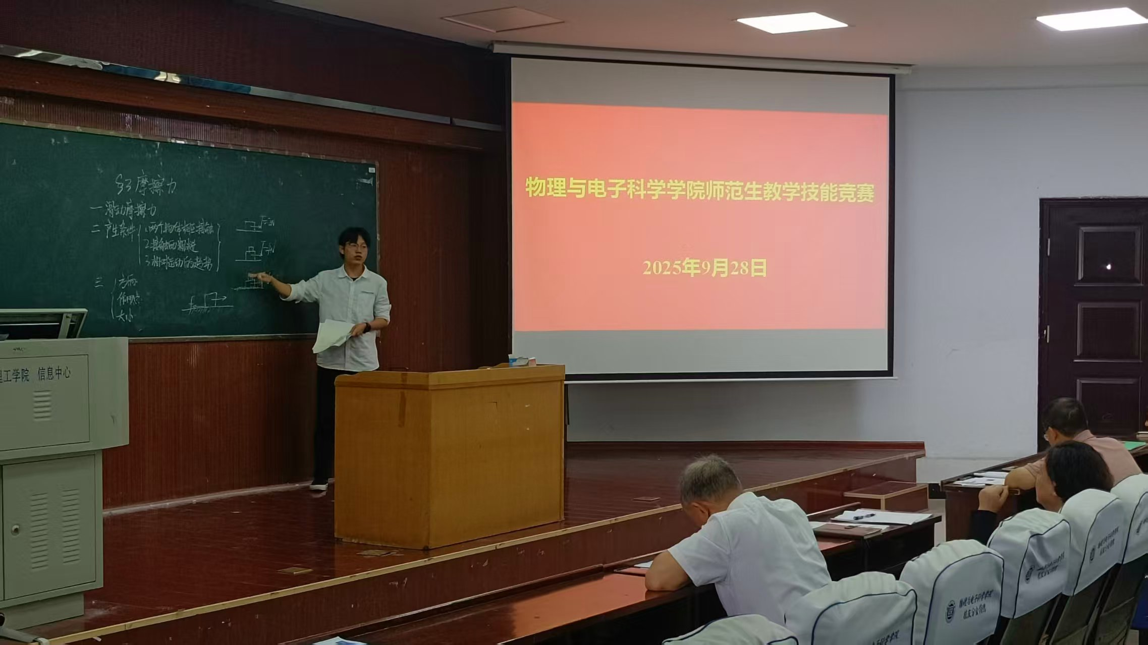 2025年9月28日,物理与电子科学学院师范生教学技能竞赛在南院6号楼学术报告厅举办,院党委书记周畅、院党委委员李科敏、物理学教研室主任李奇云担任评委。