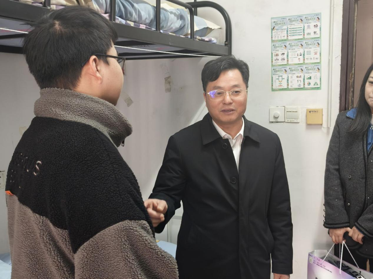 12月30日下午,副校长汤小红带队,校团委副书记彭璐、物电学院党委书记周畅、副书记石红芳及辅导员刘莹一行前往学生宿舍慰问学生。
