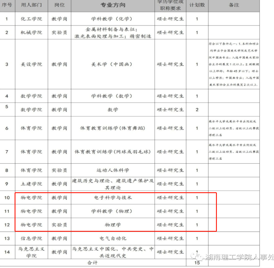 根据学校安排,物电学院2020年招聘非事业编合同制专任教师3名,专业分别为电子科学与技术、学科教学(物理)、物理学,学历学位要求为硕士研究生。具体方案如下: