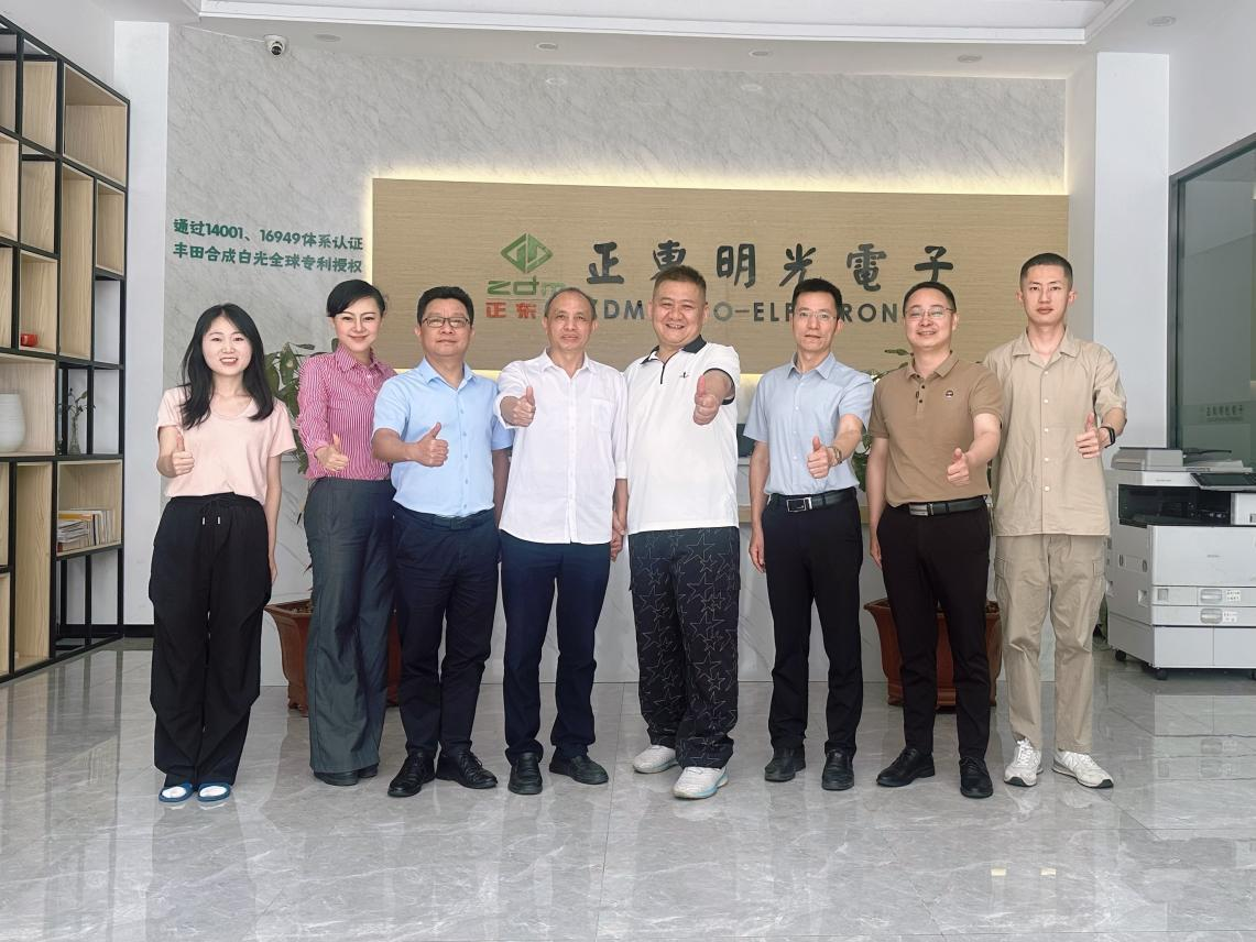 在正东明光电子公司,校友黎鹏(左五)