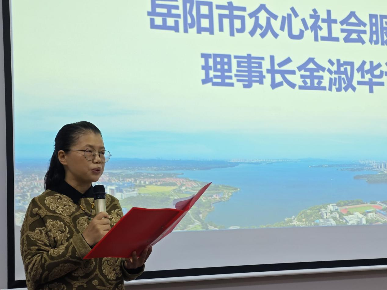 岳阳市众心社会工作服务中心理事长金淑华从志愿服务、创新创业精神、创业与志愿能力三个方面介绍了本次训班的目的,希望同学们能够积极参与讨论与实践活动中,学有所成。
