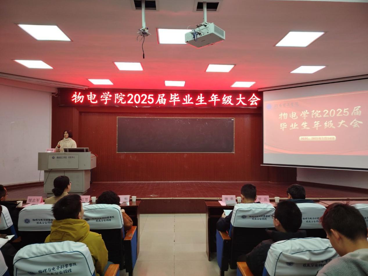 3月14日,物学院在六栋学术报告厅召开2025届毕业生大会,会议由学工办主任何小娅主持,全体院领导、辅导员及2025届毕业生参会。