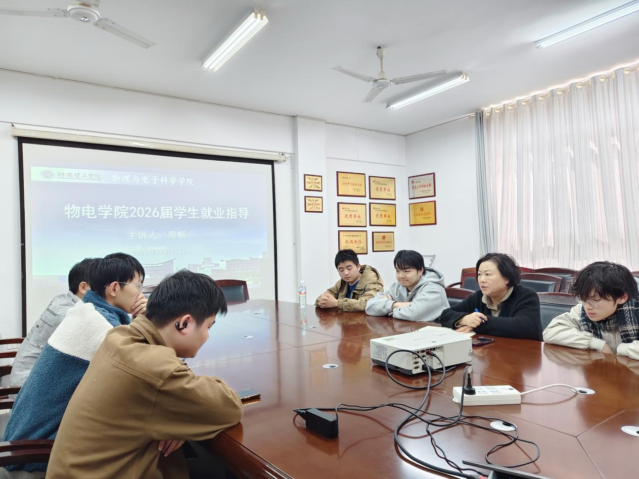 11月27日上午,物电学院党委书记周畅与2026届毕业生开展就业指导,核心围绕毕业生求职经验分享与问题指导。