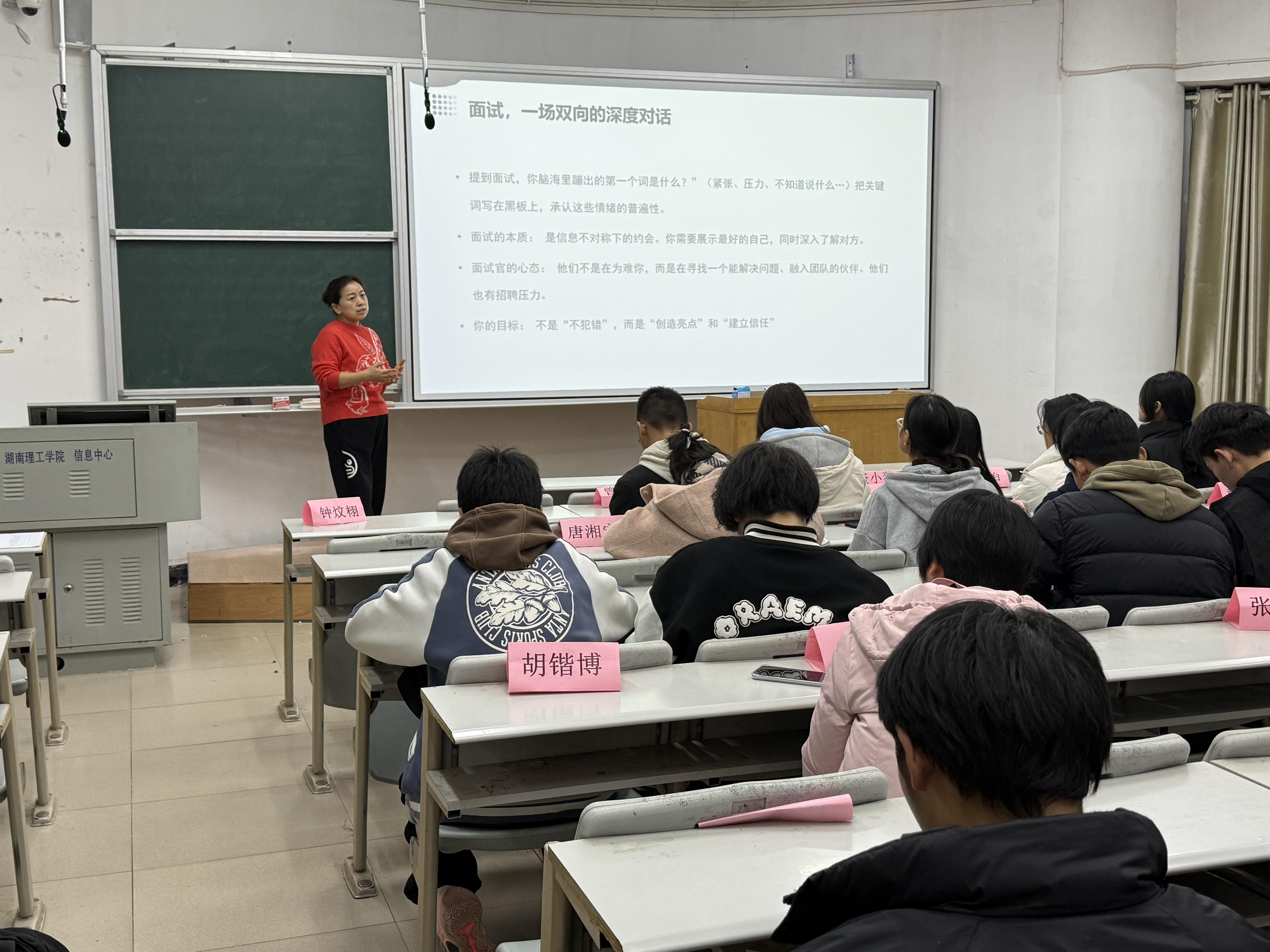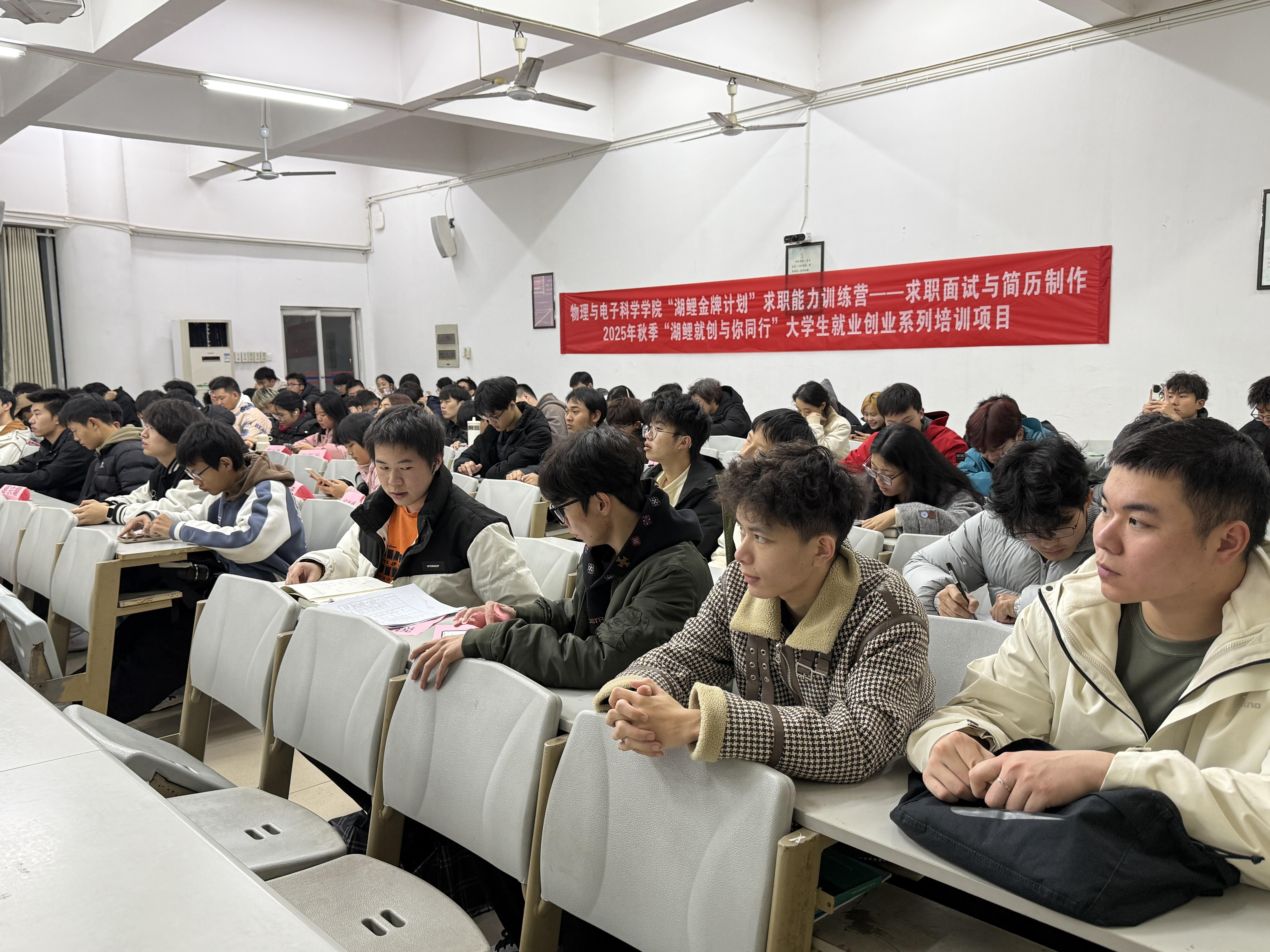 12月4日,物电学院承办的“湖鲤金牌计划”求职能力训练营活动第三讲在62T2教室开展,本次活动主题为“求职面试与简历制作”。