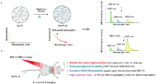 近日,我院光电材料与器件团队邓芝明博士联合湖南大学、中科院宁波材料所、吉首大学在物理学领域顶级期刊《Nano letters》(IF =9.1,DOI:10.1021/acs.nanolett.5c04718.)上发表了题为“Tunable Defect Engineering in NaYF4 Nanoparticles: Tailoring Trap States for Enhanced NIR-II Bioimaging”的研究论文,通过创新性缺陷工程策略,成功开发出具有三重近红外二区(NIR-II)发射峰的增强型荧光材料,为生物医学成像领域带来重大突破。