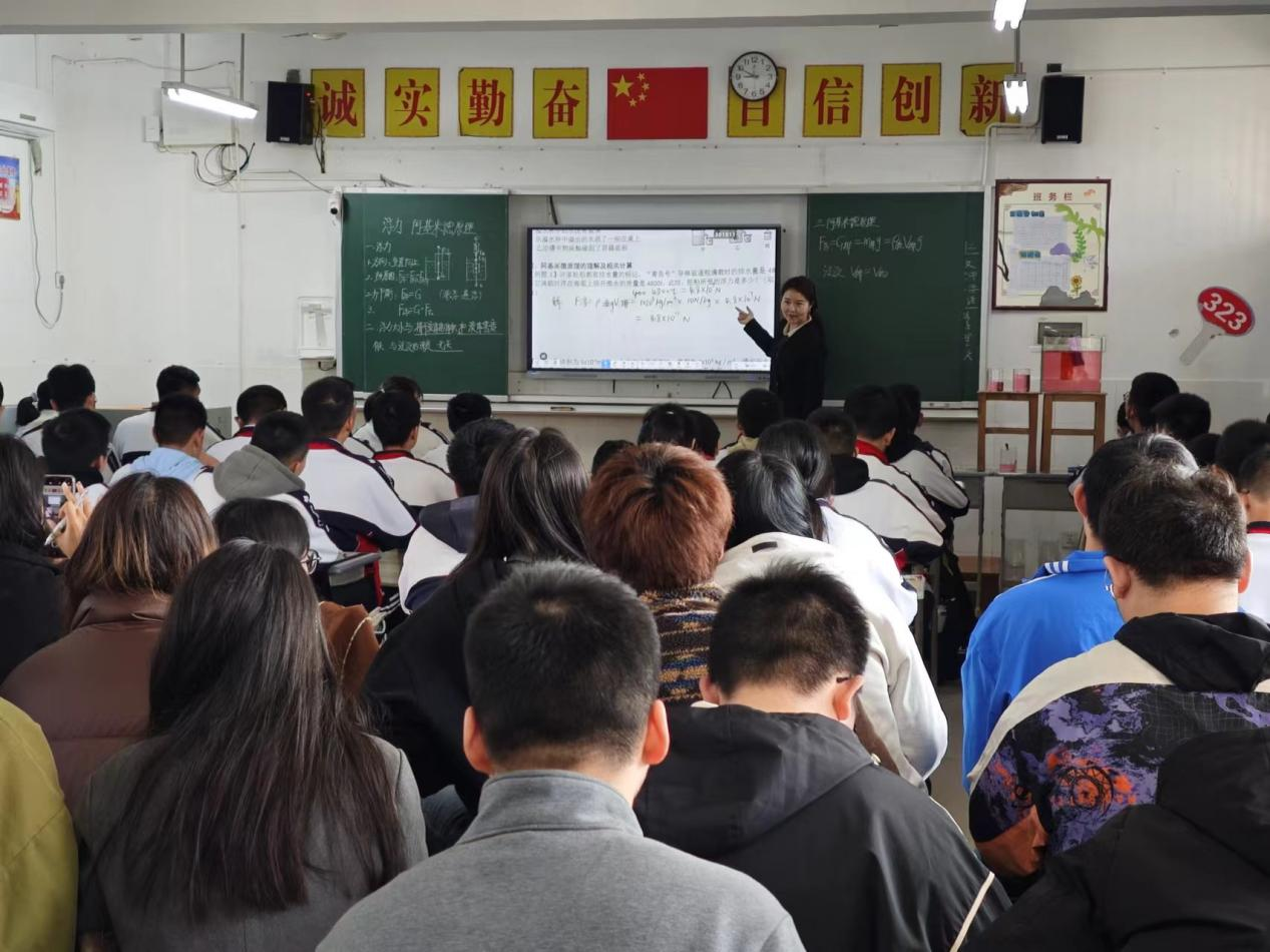 2024年3月26日上午,李奇云组织物理21-2BS班全体师范生、部分学科教学(物理)专业研究生50余人来到岳阳市弘毅新华中学,参加教育见习活动,认真观摩了岳阳名师、岳阳市“金鹗奖”获得者、我院优秀校友刘敏老师的《浮力 阿基米德原理》专题复习课,课后参加了弘毅新华中学物理组的教研活动,参观学习了该校的校园文化建设,还参加了学生的“义卖活动”。