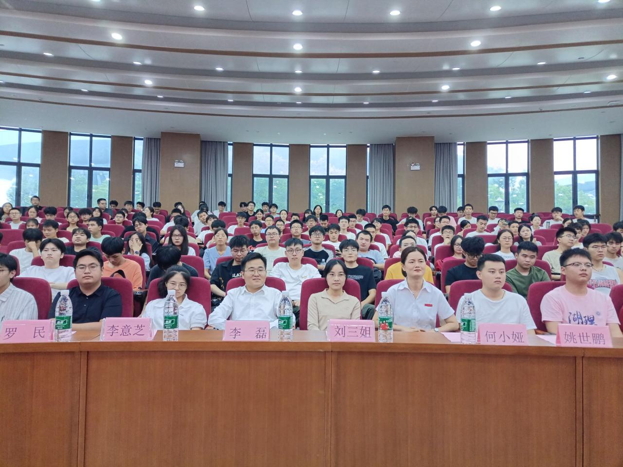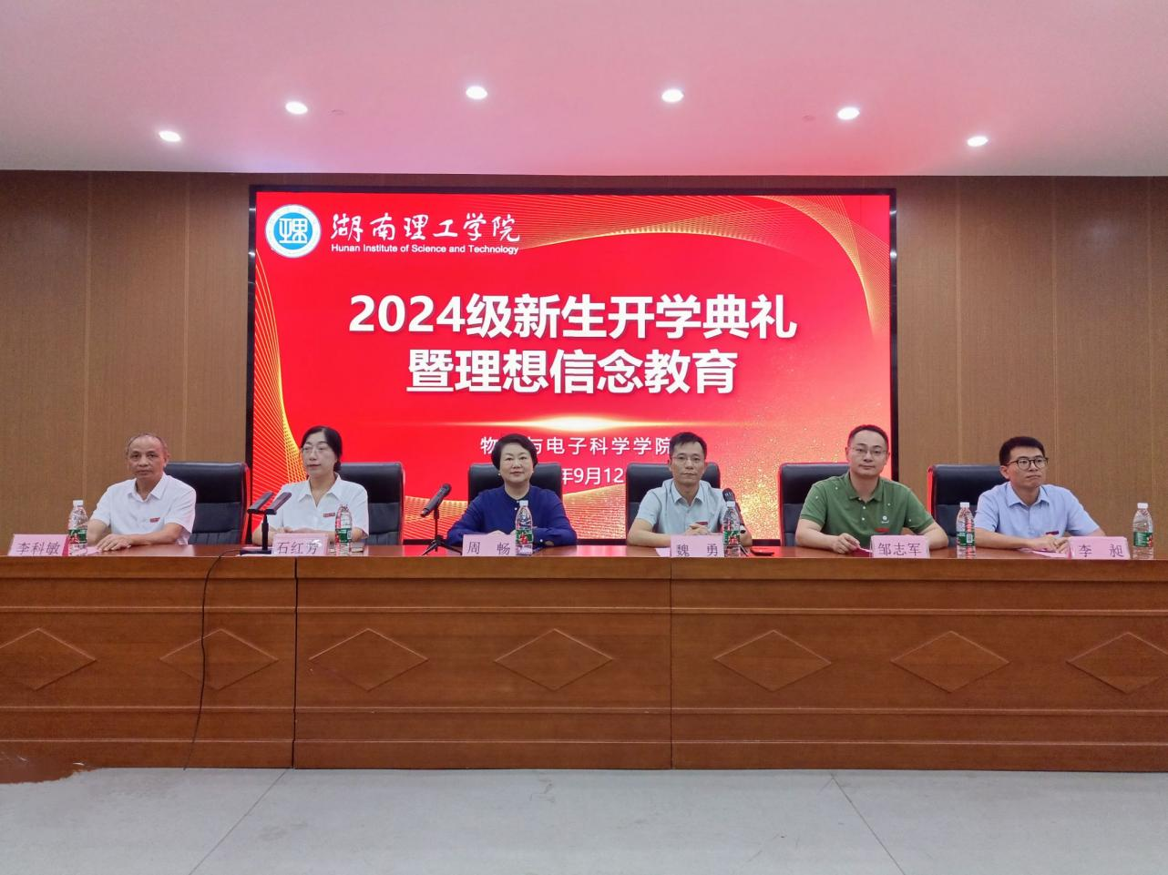校园网讯  9月12日下午,物电学院在17118举行了2024级新生开学典礼,院党政负责人周畅、魏勇及其他党政班子成员出席,全体辅导员、教师代表、新生班主任和2024级本科生、研究生参加。2024级辅导员李哲君主持。