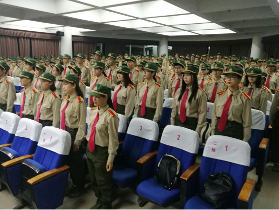 教官刚入会场时全体同学起立。连喊三声“教官好”欢迎教官的到来。展现了17级学生良好的精神风貌。何小娅老师在欢迎词中强调了军训任务的重要性,要求新生们发扬物电优良的传统,完美完成军训任务。两位教官简要的做了军训动员和工作要求。