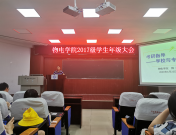 为进一步提高学生考研、就业积极性,6月23日下午,物电学院于六栋学术报告厅召开了2017级学生年级大会。物电学院院长李宏民、分党委书记罗文华、副院长魏勇,17级辅导员龙颜出席本次大会,物电学院17级全体学生参加。