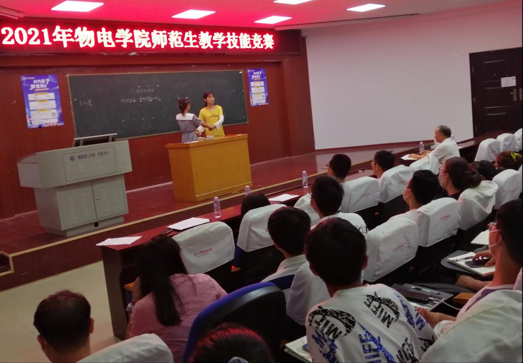 为了培养高等学校师范专业学生的教师职业意识、提高大学生的教学技能、促进师范专业学生全面发展。2021年9月16日,物理与电子科学学院在南院6号楼学术报告厅举行师范生教学技能竞赛,院党委副书记李科敏教授、副院长魏勇教授、副院长邹志军博士、物理教研室主任李芬博士、物理教育教学专任教师李奇云担任本次竞赛的评委。该项竞赛包含片段教学、教学板书、教育问答等环节,其中片段教学成绩占总成绩的70%,教学板书和教育问答各占总成绩的15%,综合考核参赛选手的物理教育教学实践与研究能力。