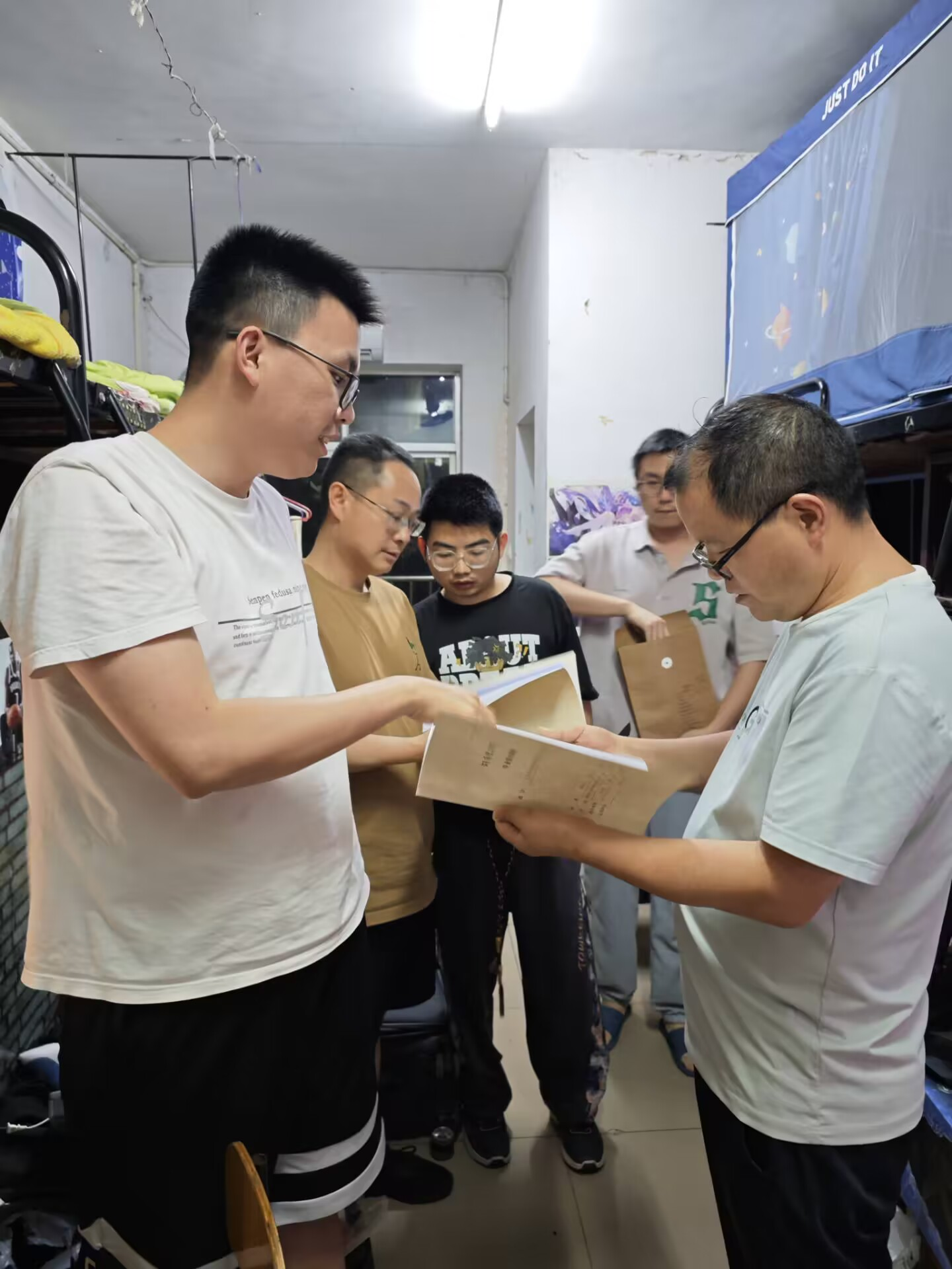 班主任老师在宿舍现场指导和检查了毕业生的毕业论文归档材料,提醒毕业生按指导老师的要求认真修改,完善各项资料,尽快将毕业论文上交学院,不要耽误证书的领取。