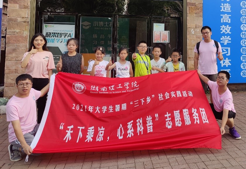 因在科研项目研究初期关注了到青少年对科学关注度普遍不高的社会问题,2021年暑期朱虹燕便组建了物理与电子科学学院“禾下乘凉 心系科普”三下乡研究生志愿服务团队,作为团队负责人,策划并组织带领志愿服务团队在岳阳开展青少年科普活动共5场,学生和家长反响很好。
