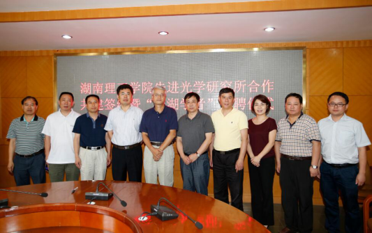 2016年7月5日我校与美国北卡罗来纳州东卡大学胡新华教授签约共建先进光学研究所,同时胡新华教授受聘为我校“南湖学者”。学校为先进光学研究所配备了完善的办公设施和现代化的科研实验设备,这是我校加大高层次人才引进力度,推进高水平学科平台建设,深化教育教学改革,促进转型发展的一次重要举措,也是物电学院发展的重要节点之一。